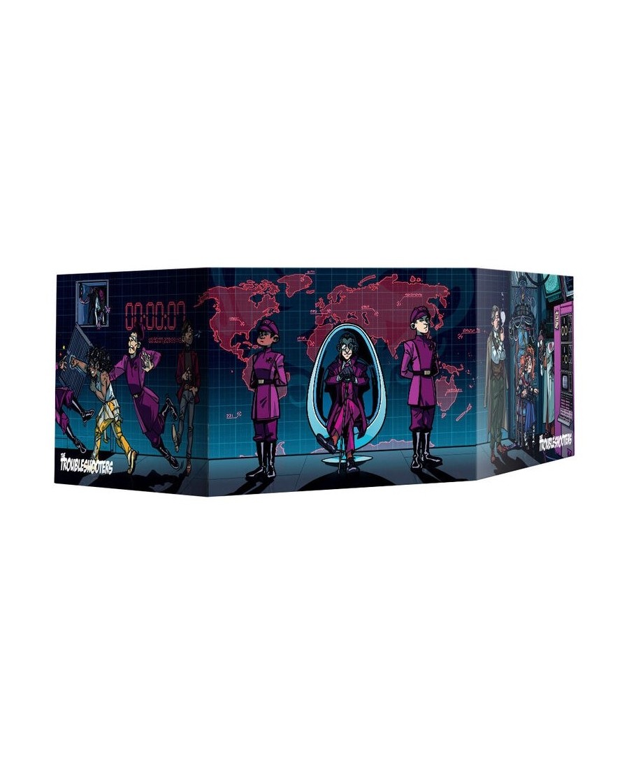 Cet écran en carton, constitué de 3 panneau A4, et en format à l’italienne, est un accessoire de jeu pour The Troubleshooters, Les Risque-Tout. Il contient toutes les informations dont vous avez besoin pour lancer une campagne.