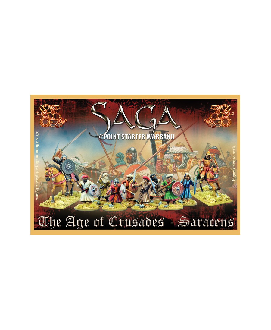 Cette boite contient l'ensemble des éléments nécessaires pour assembler 25 figurines en plastique de Sarrasins. Ils sont jouables par les factions des arabes, sarrasins, maures ou muttatawi'a dans le jeu de figurines historique SAGA.