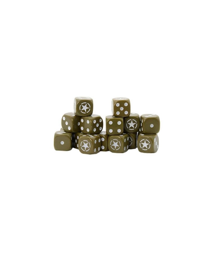 Ce pack de dés pour Bolt Action contient 16 dés couleur olive avec des inscriptions en blanc, avec le célèbre symbole de l'Étoile des Alliés remplaçant le 6 sur le dé !