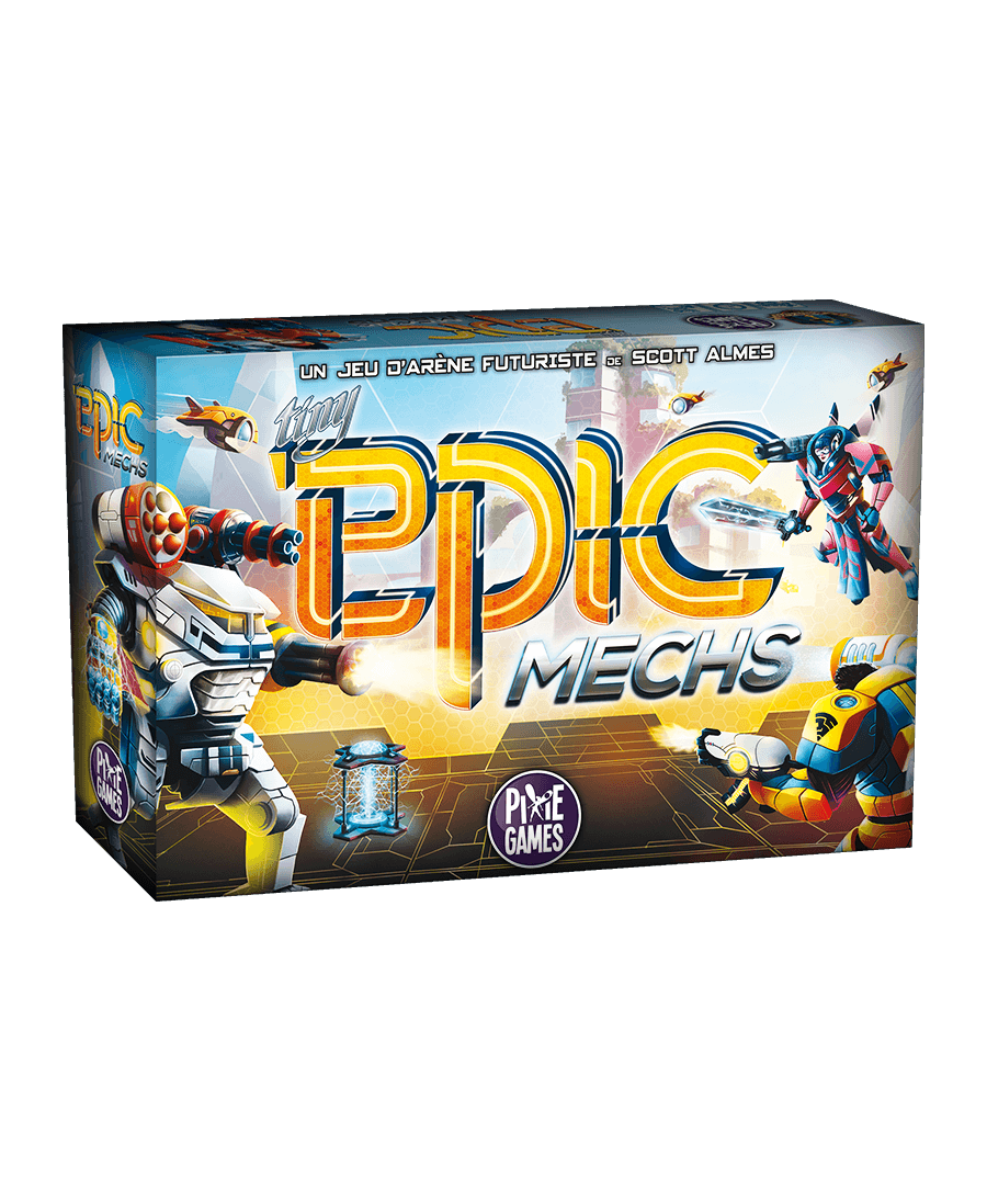 Dans Tiny Epic Mechs, incarnez les meilleurs pilotes de MECHS et prenez part à la compétition en mode Battle Royale ! Au début de chacun des 6 rounds, choisissez 4 des 8 Actions programmables disponibles : ces dernières vous permettent de vous déplacer dans l'Arène, de déployer vos défenses, cacher des explosif, collecter des ressources, acheter des armes, améliorer votre Mecha... et dégommer vos adversaires !