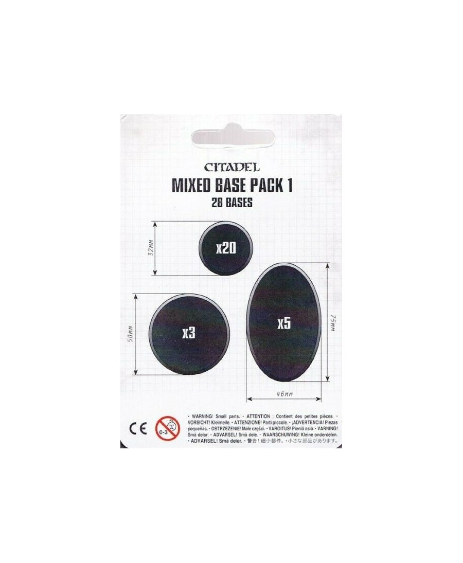 Ce Kit Citadel mixed base pack 1, contient 20 socles rond de 32mm, 5 socles de ovale de 75mmX46mm, et 3 socles rond de 50mm