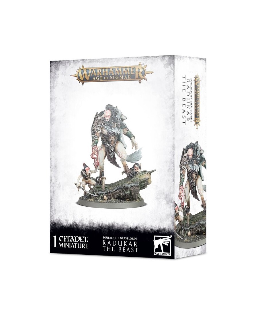 Déchaînez le redoutable seigneur de la dynastie Vyrkos, Radukar the Beast. Sous cette forme bestiale horrible, le monstrueux Radukar est une force destructrice quasi irrésistible. Il est accompagné d'un duo de Vyrkos Blood-born, des séides meurtriers qui se battent aux côtés de leur maître avec des lames à la terrible acuité.